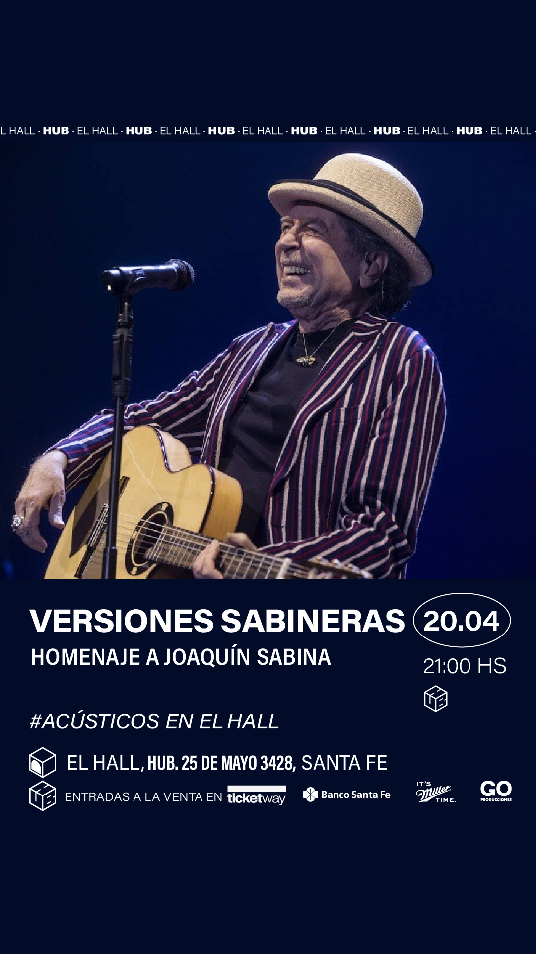 DOMINGO 20 DE ABRIL A LAS 21 HS: Versiones Sabineras llega a El Hall de HUB para una noche única con todos los clásicos de Joaquín Sabina. Entradas a la venta en boletería y a través de Ticketway.