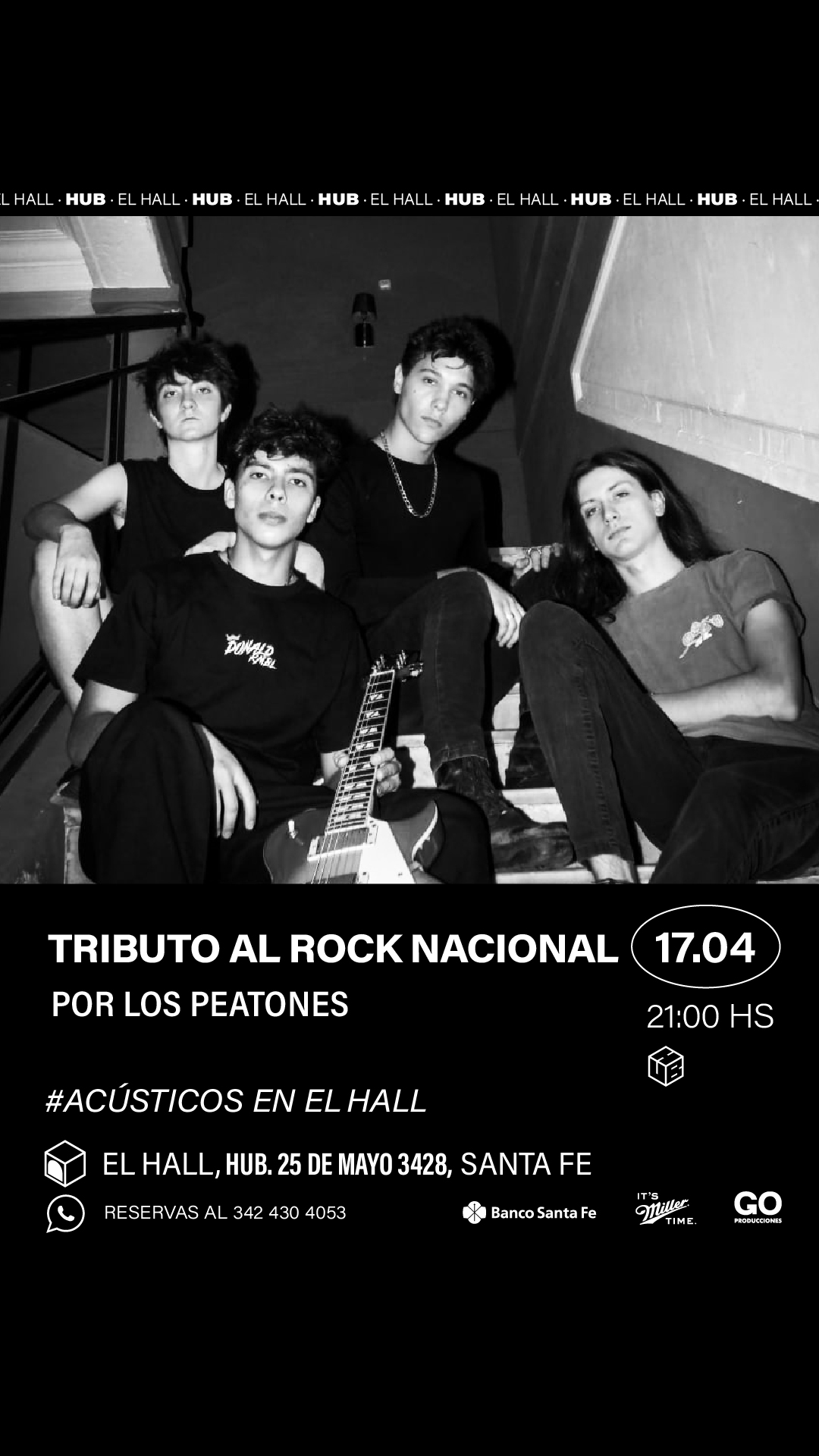 JUEVES 17 DE ABRIL A LAS 21 HS: Los Peatones regresan a HUB con el mejor homenaje al rock nacional en formato acústico. Entrada libre y gratuita.