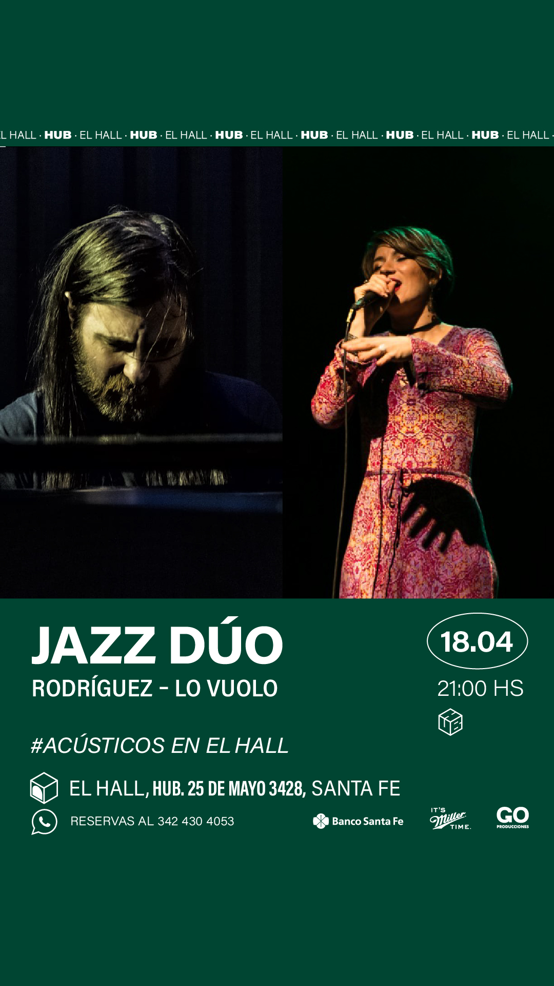 VIERNES 18 DE ABRIL A LAS 21 HS: María Paula Rodriguez en voz y Francisco Lo Vuolo en piano presentan una noche especial con los mejores standards de jazz. Entrada libre y gratuita.