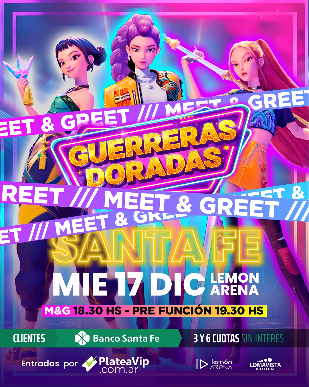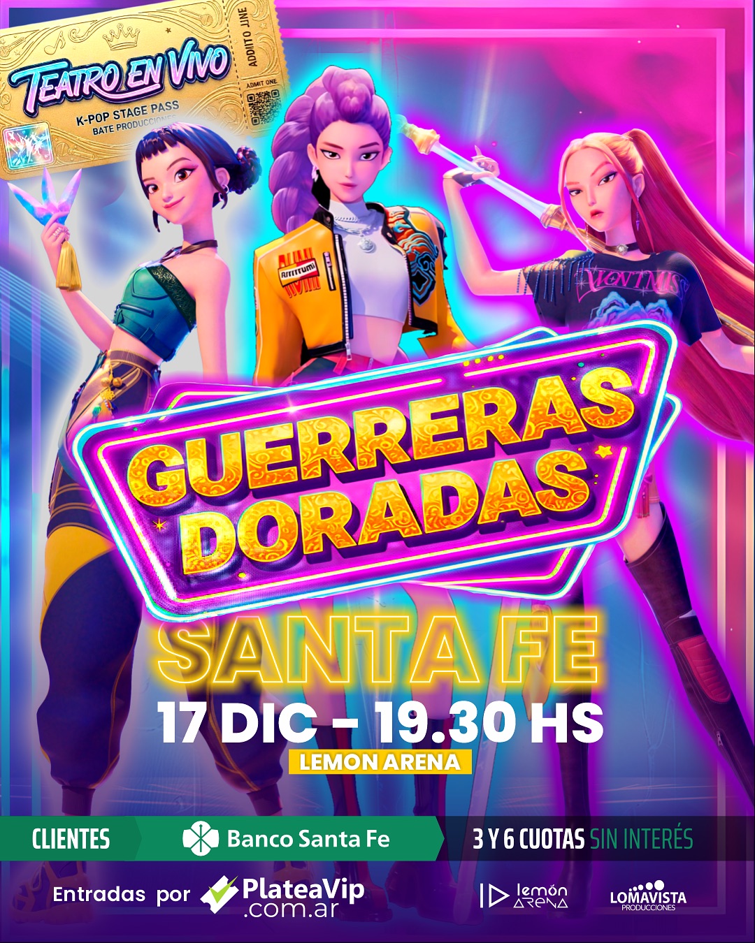 Un éxito increíble!! Nueva función!! Un show infantil lleno de música, magia y valentía!! Guerreras Doradas en Santa Fe!! Miércoles 17 de diciembre a las 19:30Hs. Lemon Arena - Santa Fe @lemonarena.sf. La oscuridad se expande y amenaza con apoderarse del mundo… pero tres chicas muy especiales fueron enviadas para protegernos.
