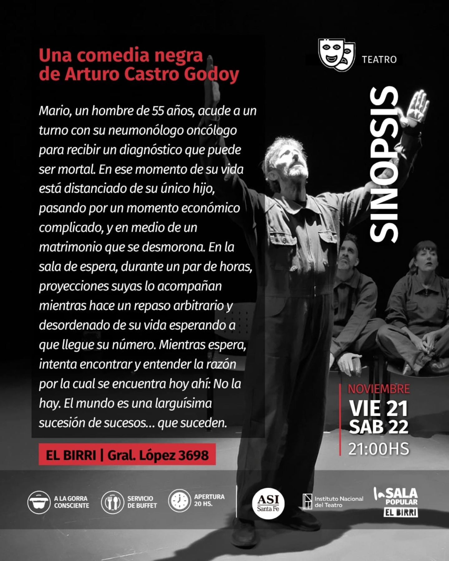 Llega a La Sala Popular "Construcción (F40)" una comedia negra que no te podés perder!! Santa Fe | Viernes 21 y Sábado 22 de Noviembre - 21Hs en Gral.López 3698. Jóvenes y Adultxs. Mario, un hombre de 55 años, acude a un turno con su neumonólogo oncólogo para recibir un diagnóstico que puede ser mortal.