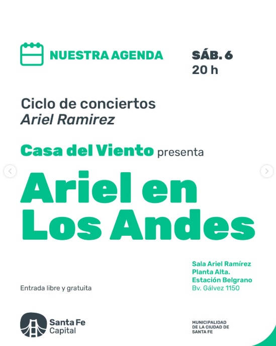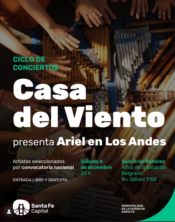 Sigue el ciclo de música con los conciertos en Sala Aríel Ramírez, está vez Casa Del Viento presenta su propuesta llamada "Ariel En Los Andes".