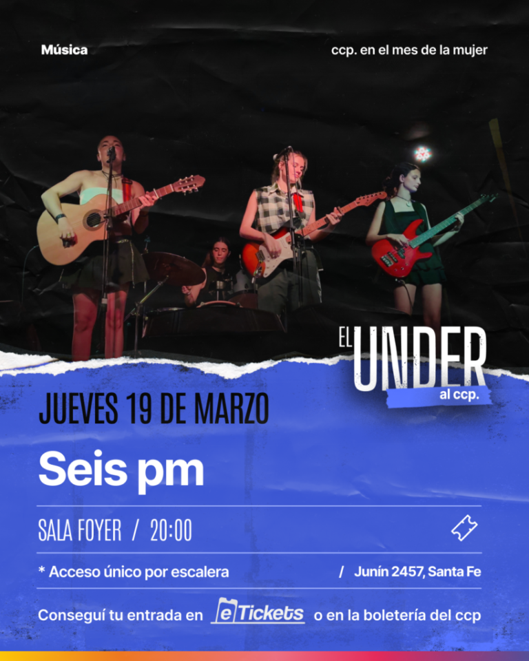 Comienza la 3ra temporada de «El under al ccp». El Centro Cultural Provincial (CCP) continúa apostando a la escena musical local con su ciclo de los jueves, dedicado a difundir a artistas y proyectos emergentes de la región. Desde hace tres años, las presentaciones tienen lugar los jueves a las 20Hs en la Sala Foyer, entradas disponibles en eticket.