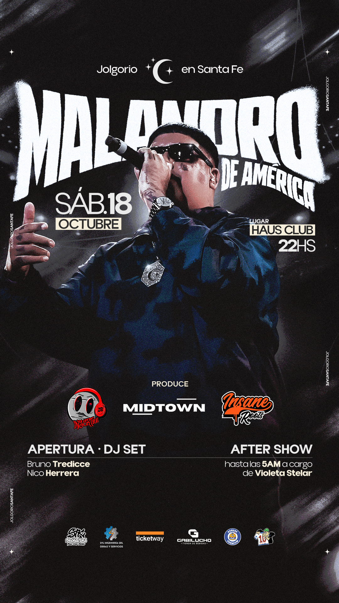 Malandro de América llega a Santa Fe: la misa rapera más esperada. El próximo sábado 18 de octubre, el escenario de Haus será el punto de encuentro para una noche única donde la cultura urbana y la fiesta se funden en un mismo pulso. La cita tendrá como figura central a Malandro de América, referente indiscutido del rap local que conquistó las redes y la calle con su estilo directo, crudo y magnético.