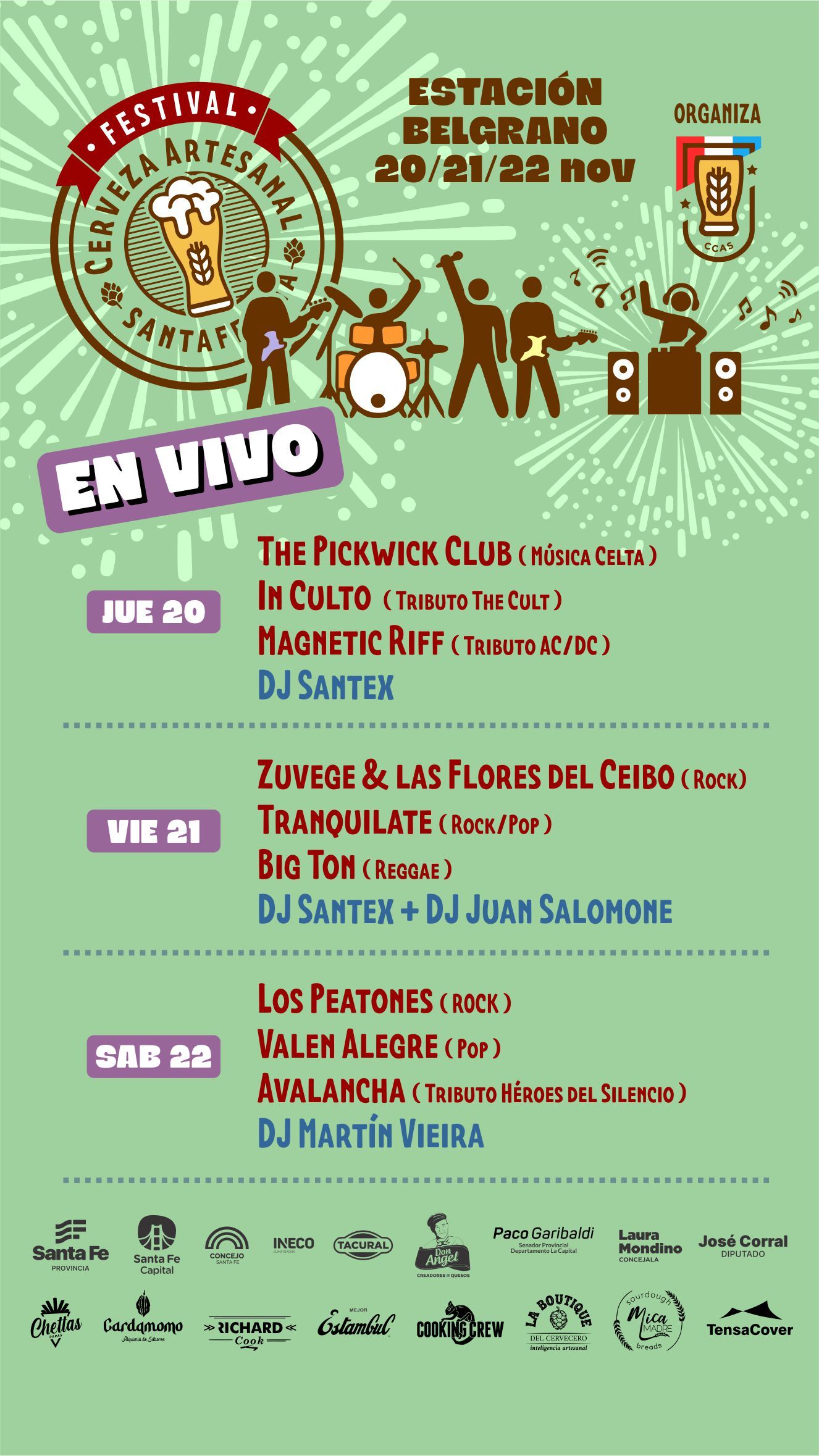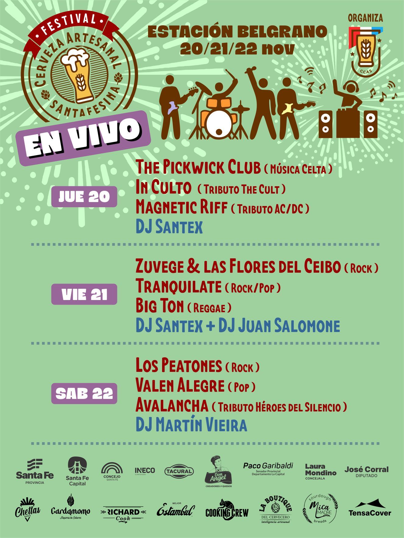 Lineup de bandas en vivo: Durante las tres jornadas habrá buena música para acompañar cerveza y gastronomía santafesinas: