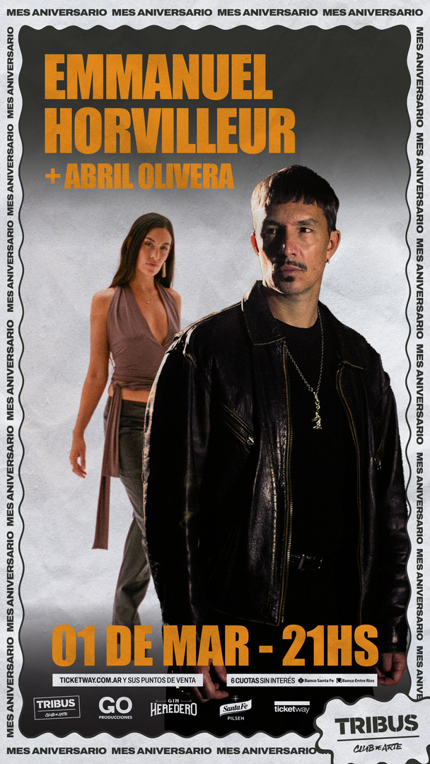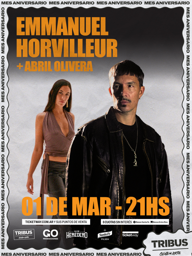 Mes Aniversario: Emmanuel Horvilleur & Abril Olivera llegan a Tribus presentando sus discos. Emmanuel Horvilleur y Abril Olivera se presentarán en Tribus Club de Arte el domingo 1 de marzo a las 21Hs. Las entradas están a la venta en boletería de Tribus y a través de Ticketway.
