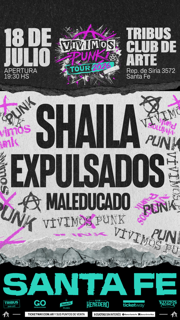 Shaila y Expulsados unen fuerzas para vivir una noche a puro hardcore punk en Santa Fe!!!! Shaila y Expulsados se presentarán en Tribus Club de Arte el sábado 18 de julio a las 19:30Hs. Como banda invitada estará Maleducado. Las entradas están a la venta en boletería de Tribus y a través de Ticketway.