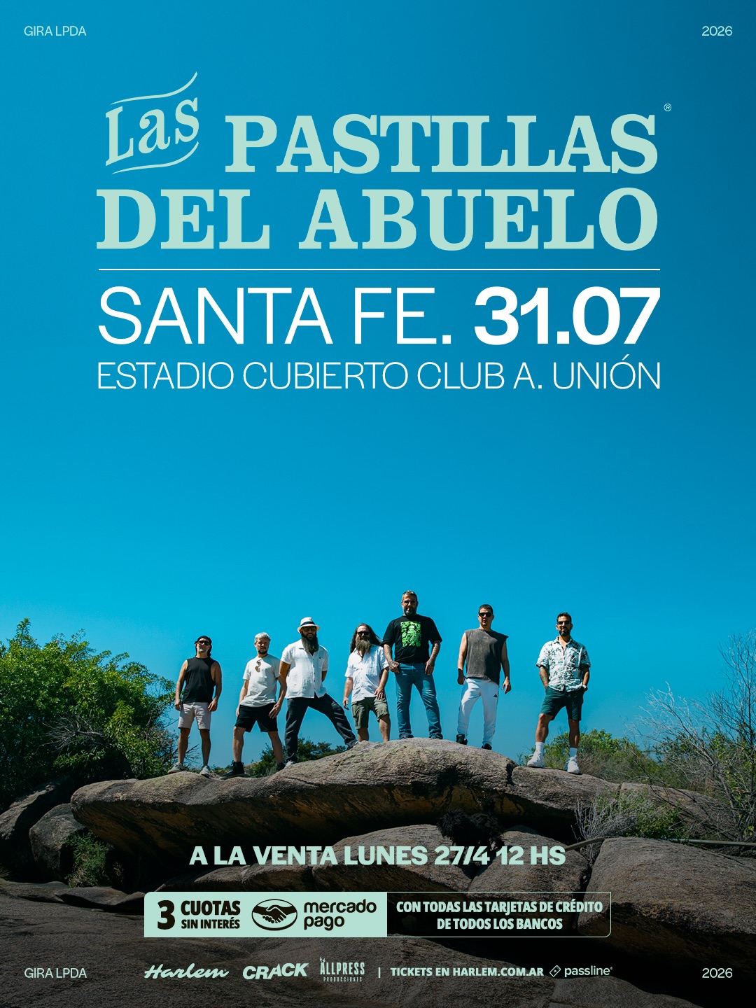 @LASPASTILLASDELABUELO llega a Santa Fe!!!! La tan esperada fiesta pastillera ya está cercaaa. El viernes 31 de julio en el Estadio Cubierto del @clubaunion. A la venta el Lunes 27/4 a las 12Hs en HARLEM.COM.AR. ¡3 Cuotas sin interés! Con todas las tarjetas de crédito de todos los bancos durante todo el período de venta. Exclusivo a través de www.passline.com. Entradas físicas (sólo en efectivo) en Tienda Unión (Av. López y Planes 3553, Santa Fe) y Terco Tour (25 de mayo 453, Paraná).